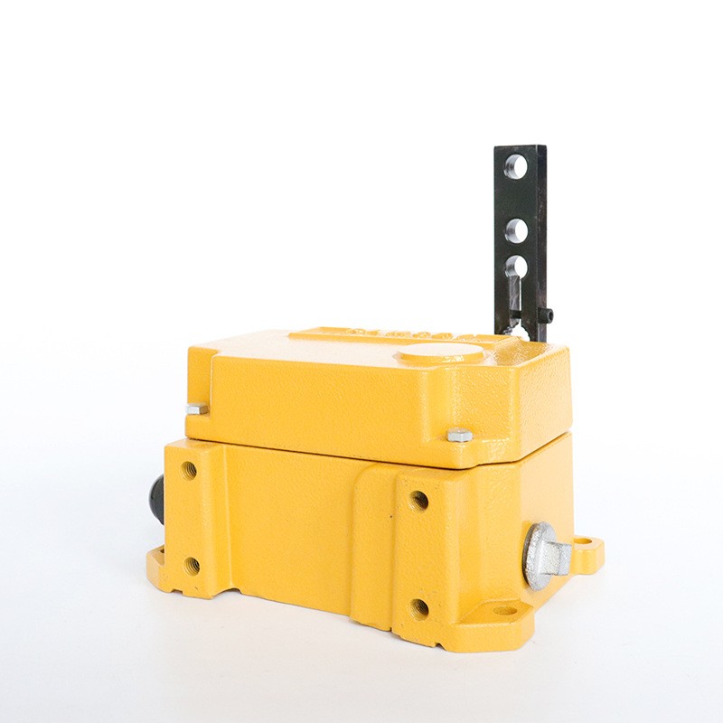 当胶带运输现场发生紧急事故时,拉动系在吊耳上的钢丝绳,使机内的滑块与开关作用,发出停机信号。松开钢丝绳按下复位杠后方可复位